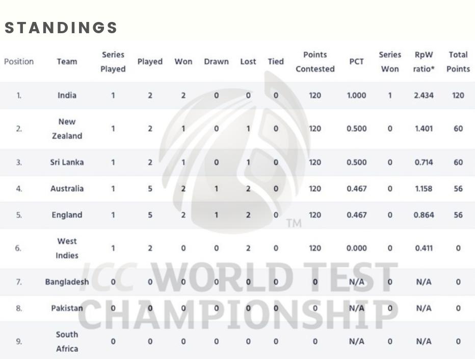 Icc Test Championship Points Table Icc Test Championship Schedule
